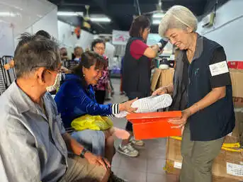 志工们为长者准备新衣新鞋、理发及修剪指甲服务,并用立可拍留下珍贵照片,提升长者们的仪容与自信,留下温馨回忆。临别时,每位长者皆获赠枕头、毛巾、艾草抱枕、保健品等生活物资,真正“幸福满载”而归。