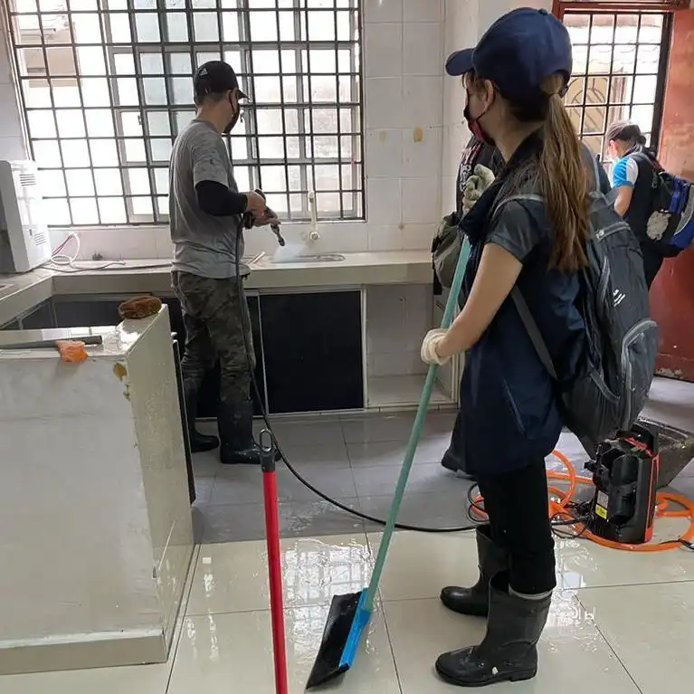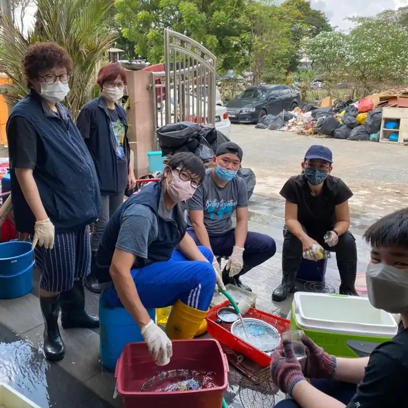 第三,太子园重灾区是7979的邻舍,距离办公室不超过10公里,是我们锁定关心、回应的地方。水退第一天,与同工前往勘察时,却在关键路口被截停。由于过多车辆造成堵车,我们被迫打道回府。回程时,我告诉同工,我们该联系当地教会。一回到办公室,就接到位于灾区的莎亚南福音中心的Dexter长老的来电,询问配搭应灾事宜。隔天会面时,我们一见如故,原来几天前我们见过两次面,仅点头打招呼。我们原互不相识,却能在此刻合作,算是神圣的相遇吧。
